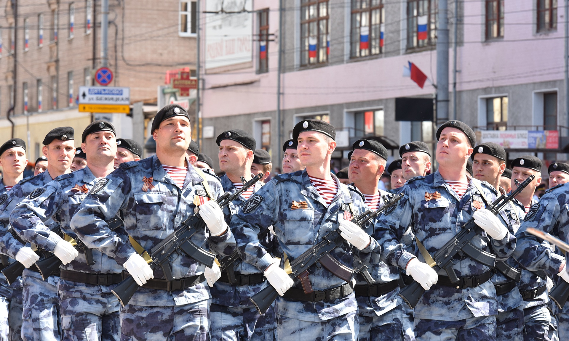 В торжественном марше принял участие отряд мобильный особого назначения Управления Росгвардии по Брянской области. Сотрудники отряда выполняли и продолжают выполнять служебные задачи в Северо-Кавказском регионе. За личное мужество, доблесть и самоотверженность, проявленные в боевых действиях, более 500 человек из состава брянского ОМОНа награждены государственными и ведомственными наградами. С октября 2016 года ОМОН вошел в состав войск национальной гвардии Российской Федерации.