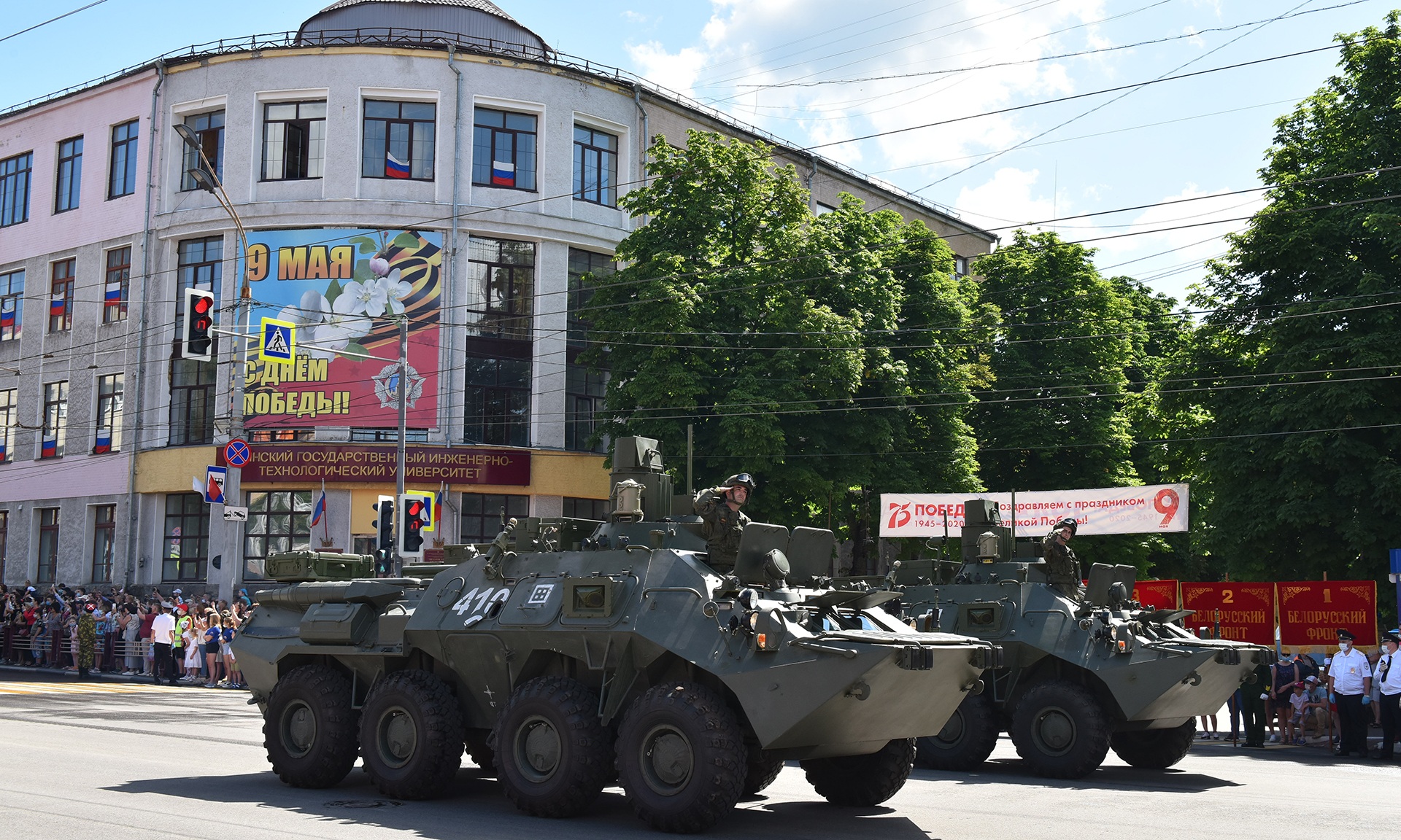 Участники торжественного марша увидели прохождение парадных расчётов механизированной колонны. В её составе современная военная техника, стоящая на вооружении воинских частей и соединений российской армии.