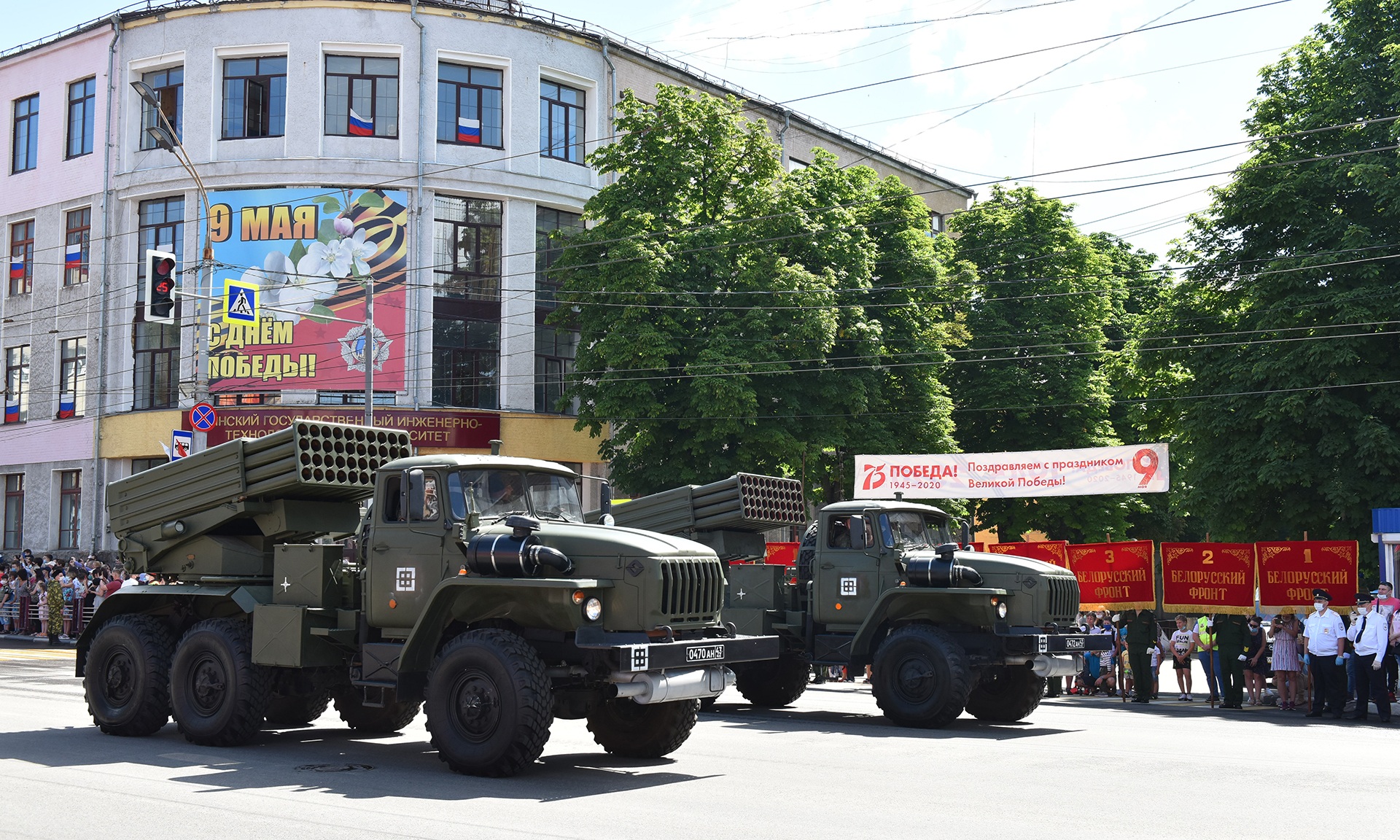 В марше участвовала 122-миллиметровая реактивная система залпового огня Торнадо-Г 856-го гвардейского, самоходно артиллерийского, Кобринского, ордена Красного Знамени и ордена Богдана Хмельницкого полка. Основное отличие от своего предшественника РСЗО «Град» заключается в более совершенной системе управления огнём со спутниковой навигацией и компьютером расчёта баллистических показателей, что позволяет выполнять наведение на координаты цели в автоматическом режиме.
