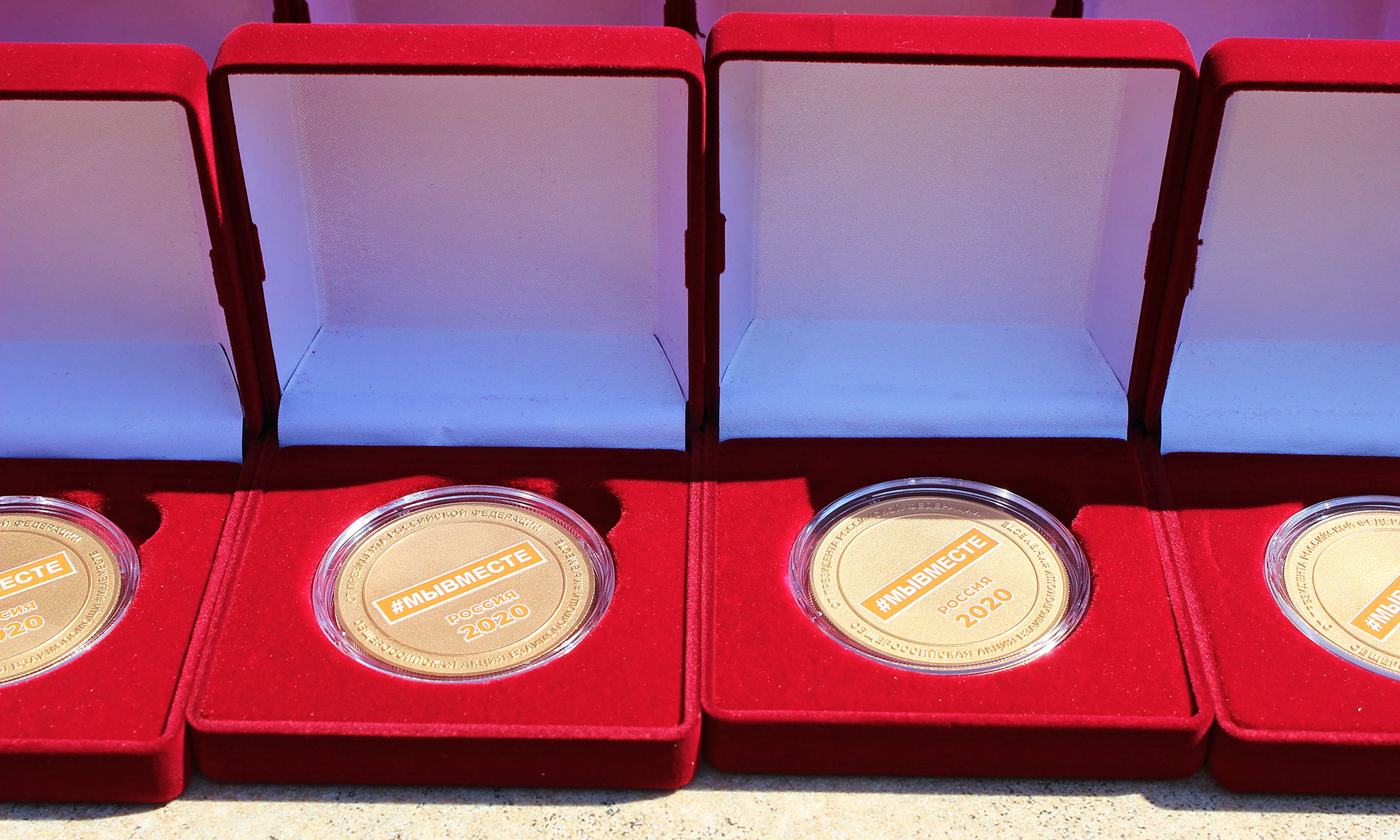 Всего будет награждено более 250 волонтеров и руководителей муниципальных штабов. Сегодня наградили первых 34 человека — волонтеров Всероссийской акции «Мы вместе».