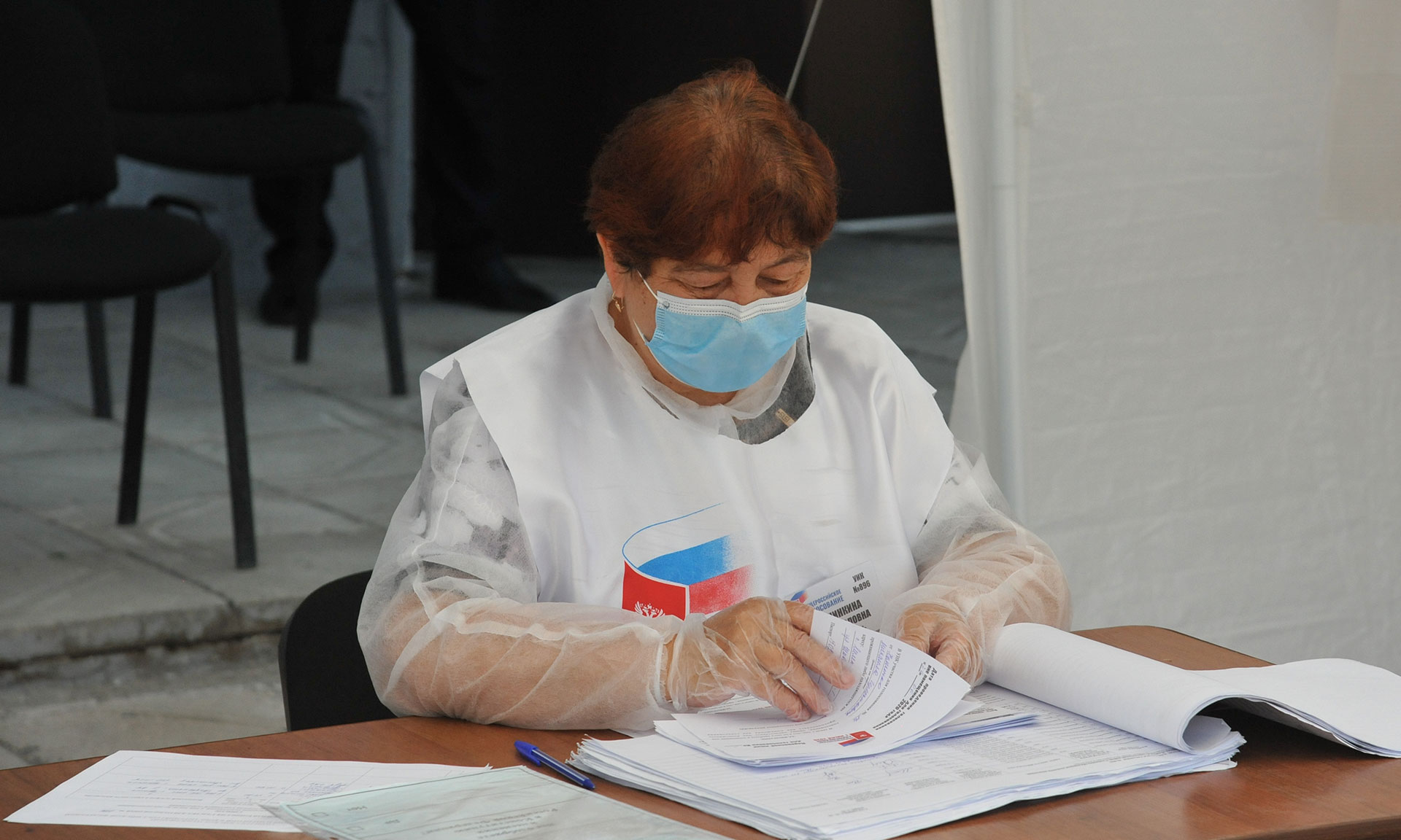 Голосование проходит с соблюдением всех мер безопасности. Средства индивидуальной защиты выдают участникам голосования прямо на участках для голосования.