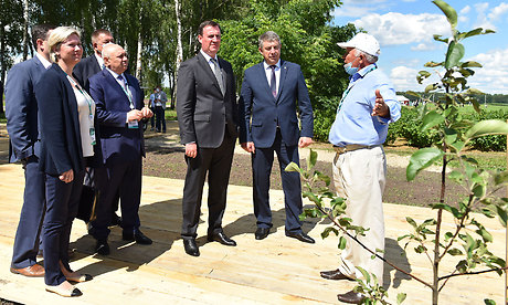 Министр сельского хозяйства РФ Дмитрий Патрушев и Губернатор Брянской области Александр Богомаз осмотрели яблоневый сад Брянского аграрного университета.