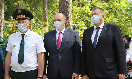 Перед началом церемонии вручения техники почетные гости приняли участие в открытии первого в России памятника лесникам-партизанам, воевавшим в годы Великой Отечественной войны в партизанских отрядах. На знаковое мероприятие прибыли родственники Дмитрия Ивановича Уваренкова, нашего земляка, который стал прототипом для собирательного образа лесников-партизан, — его внук Андрей Уваренков и правнучка Ольга Уваренкова.