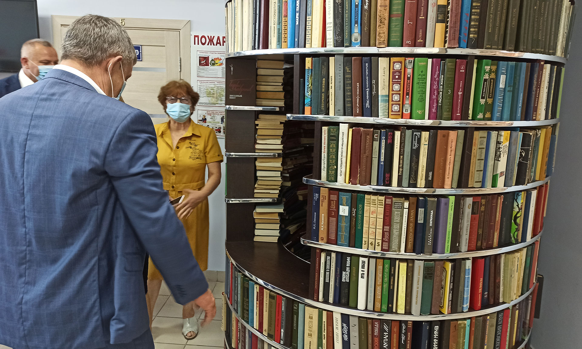 Александру Богомазу показали гордость библиотеки — бесконечную книжную башню: в ней около 5 тысяч книг снаружи, а в зеркальном отражении внутри их будто бесконечное множество. Идею директор Татьяна Полетаева привезла из Пражской государственной библиотеки. Это не только оригинальное решение с эстетической стороны, «башня» выполняет важную функцию буккроссинга — посетитель может взять почитать любую книгу и взамен принести свою. В холле нашлось место и для картинной галереи — вернисажи устраивают не только местные художники, но и живописцы из других городов.