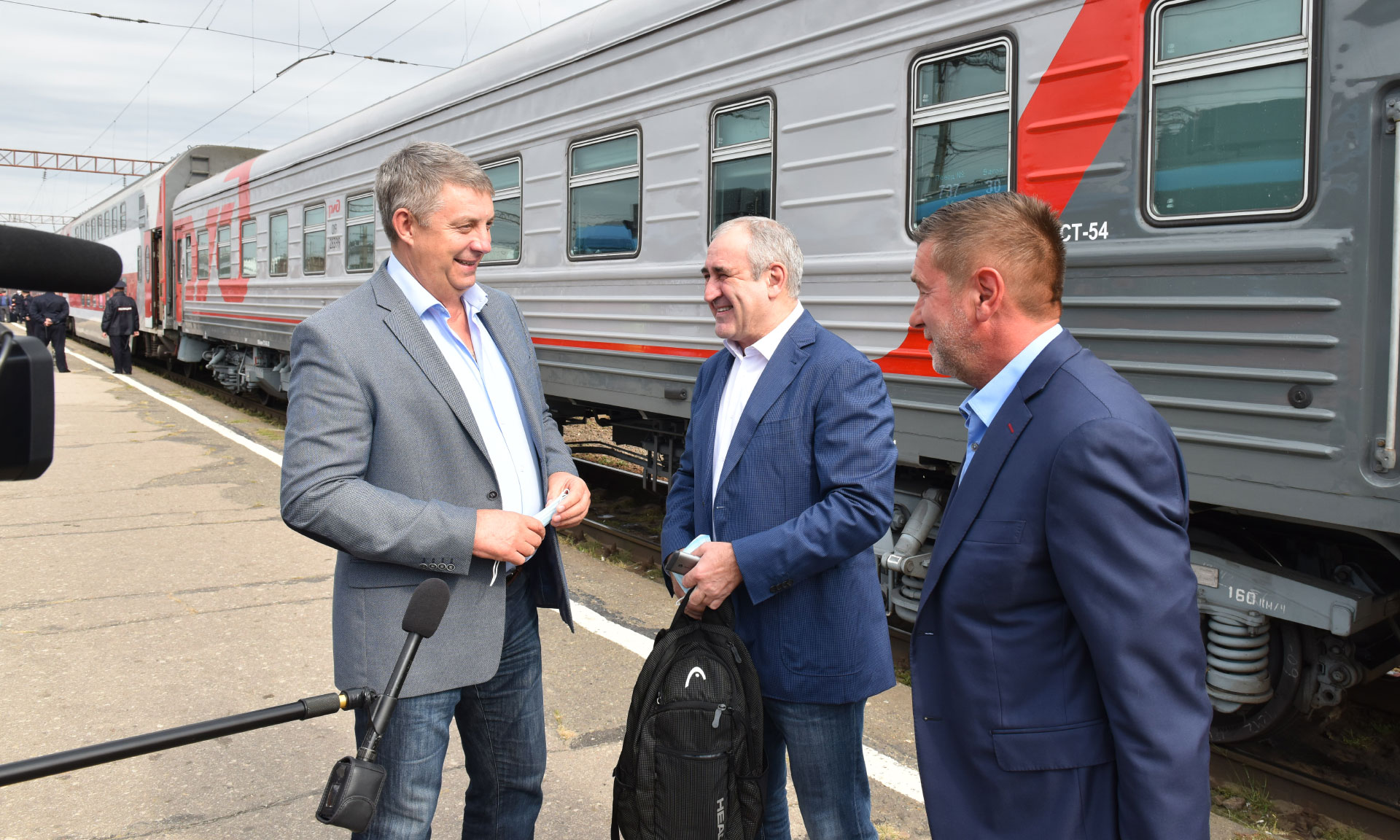 На железнодорожном вокзале Брянск-Орловский его встретил Губернатор Брянской области Александр Богомаз. В рамках рабочей поездки Сергей Неверов примет участие в открытии Ледового дворца в городе Стародубе.