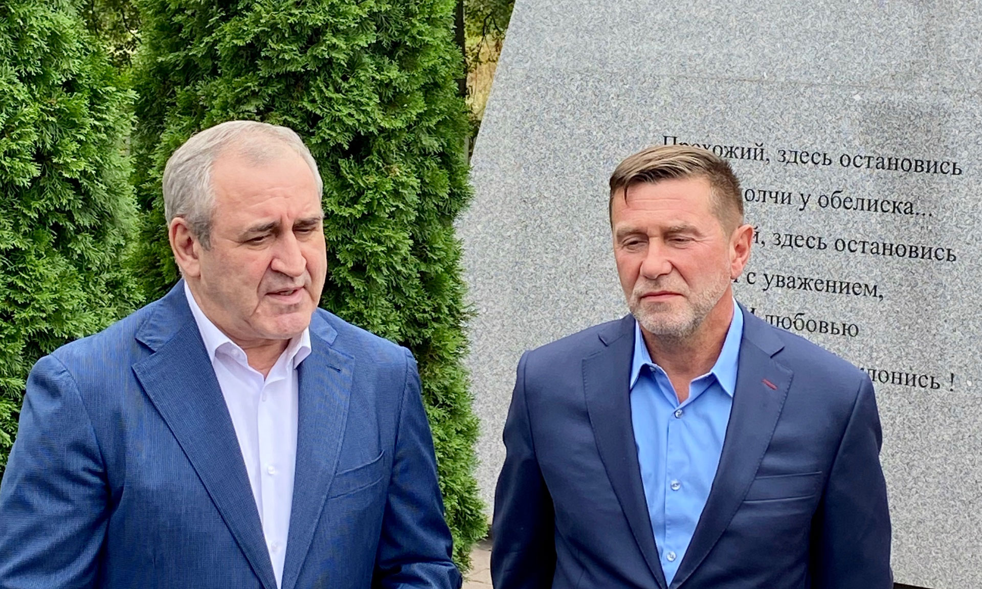 Вместе с Александром Богомазом они возложили цветы к мемориалу и к памятнику в честь подвига неизвестного танкового экипажа 141-й отдельной танковой бригады 13-й армии Брянского фронта, погибшего в октябре 1941 года.