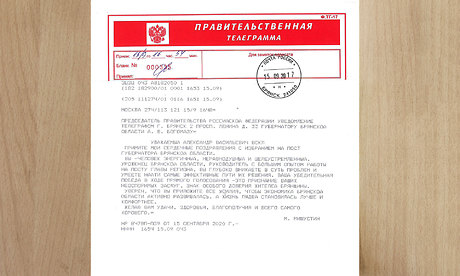 Примите мои сердечные поздравления c избранием на пост Губернатора Брянской области.