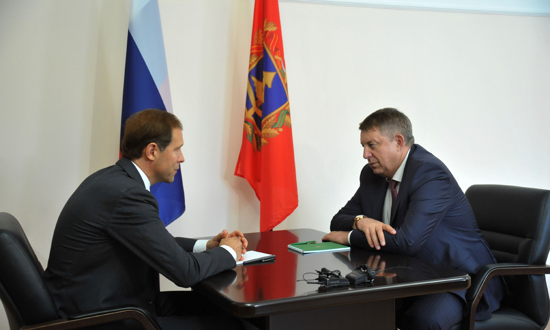 25 сентября в рамках поездки в Брянскую область Денис Мантуров провел рабочую встречу с Губернатором Брянской области Александром Богомазом. Министр промышленности и торговли Российской Федерации поблагодарил Губернатора за оперативное решение вопросов и создание благоприятных условий для развития промышленности в регионе, а также обсудил дальнейшие перспективы отрасли.