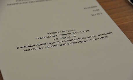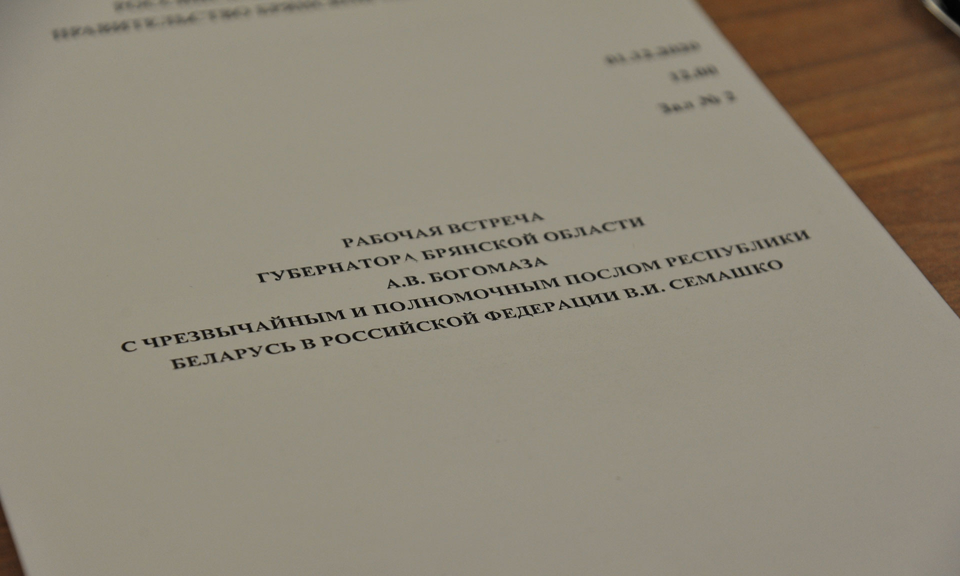 В рабочей встрече с Губернатором Брянской области Александром Богомазом приняли участие, советник-посланник Посольства Республики Беларусь в Российской Федерации Владимир Степук, советник отделения Посольства Республики Беларусь в Российской Федерации в Смоленске Сергей Мисурагин, председатель белорусского государственного концерна пищевой промышленности «Белгоспищепром» Анатолий Бубен, заместитель председателя Гомельского облисполкома Андрей Конюшко, заместитель начальника главного управления экономики и внешнеэкономической деятельности Минстройархитектуры Республики Беларусь Алексей Шило, председатель Брянской областной Думы Валентин Суббот, заместители Губернатора Брянской области Галина Петушкова, Владимир Реунов, Борис Грибанов.
