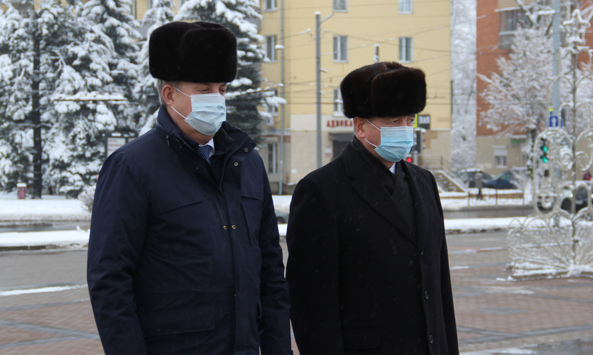 У России и Беларуси одна общая великая история. Народы наших стран вместе боролись за свободу и независимость, освобождали мир от немецкой-фашистских захватчиков. Память о подвиге героев освободителей бережно хранят и в Беларуси, и в России. В год 75-летия Победы в память о бессмертном подвиге партизан — героев Великой Отечественной войны, Чрезвычайный и Полномочный Посол Республики Беларусь Владимир Семашко и Губернатор Брянской области Александр Богомаз возложили цветы к Вечному огню Памятника воинам и партизанам, освободителям Брянска от немецко-фашистских захватчиков.