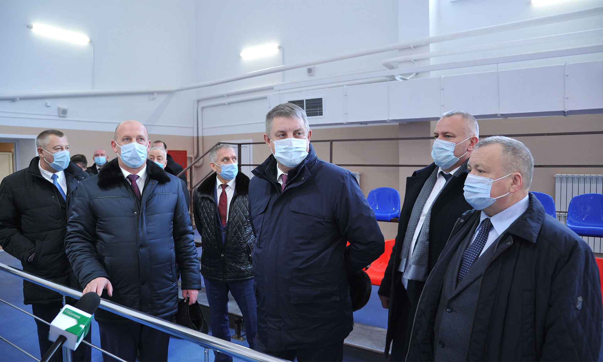 2 декабря Александр Богомаз приехал на объект, чтобы посмотреть, готов ли он к открытию, как обещали строители. Готовность — почти 100%. Проект типовой — два бассейна, 25 на 11 и 10 на 6 метров, универсальный спортивный зал, зал подготовительных занятий, тренажерный зал, сауна, массажный кабинет, помещение солярия, буфет, кабинеты для специалистов.