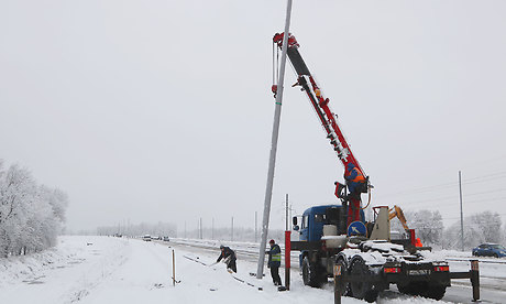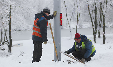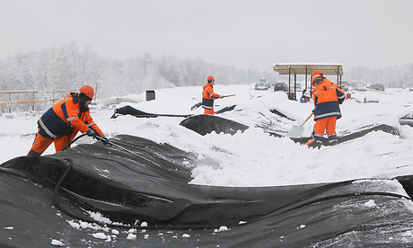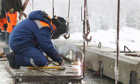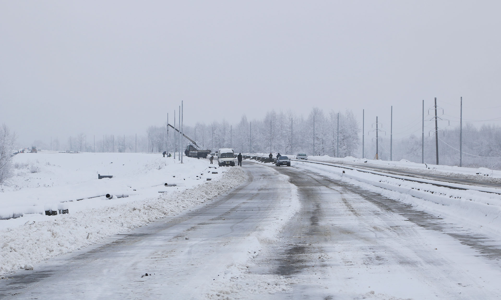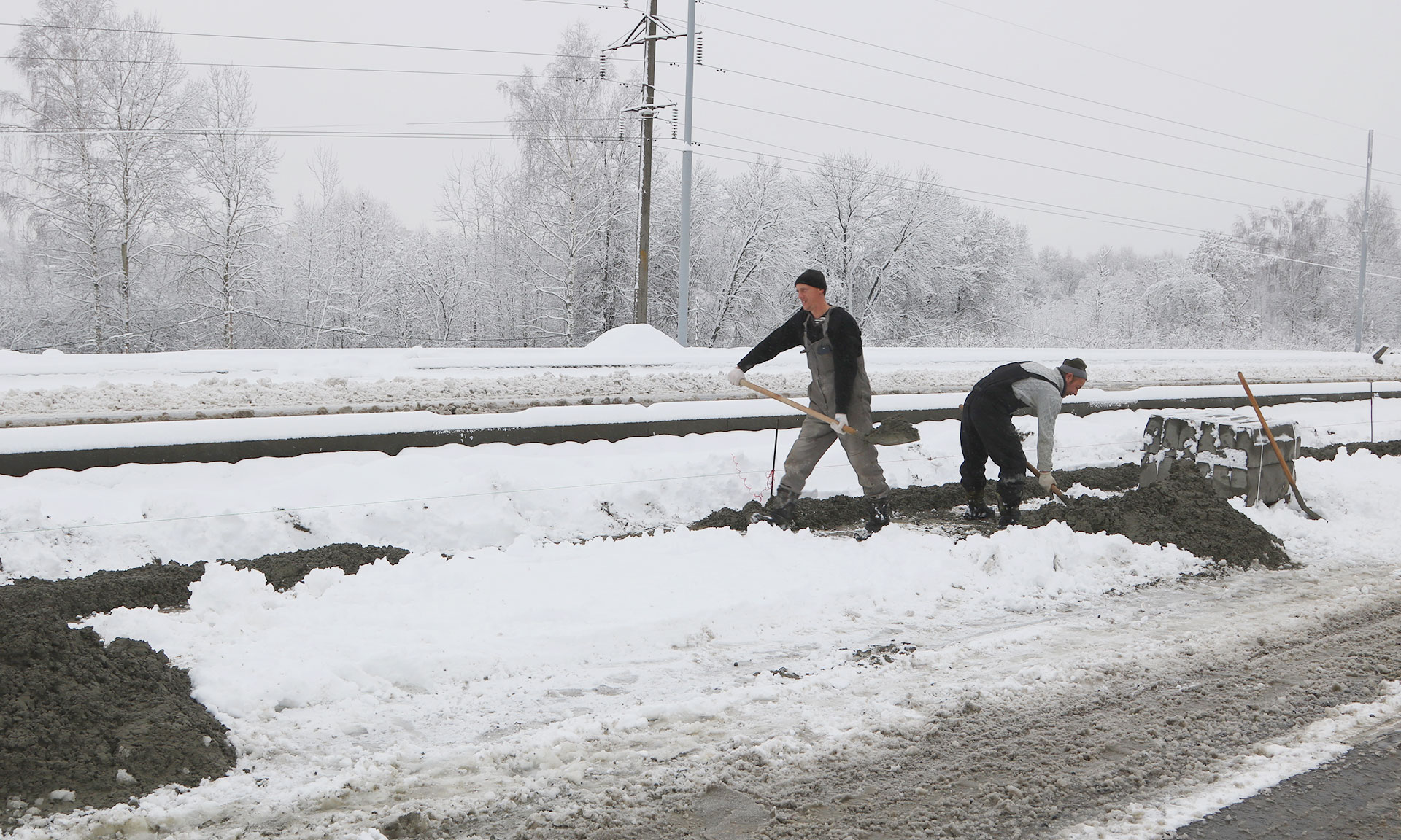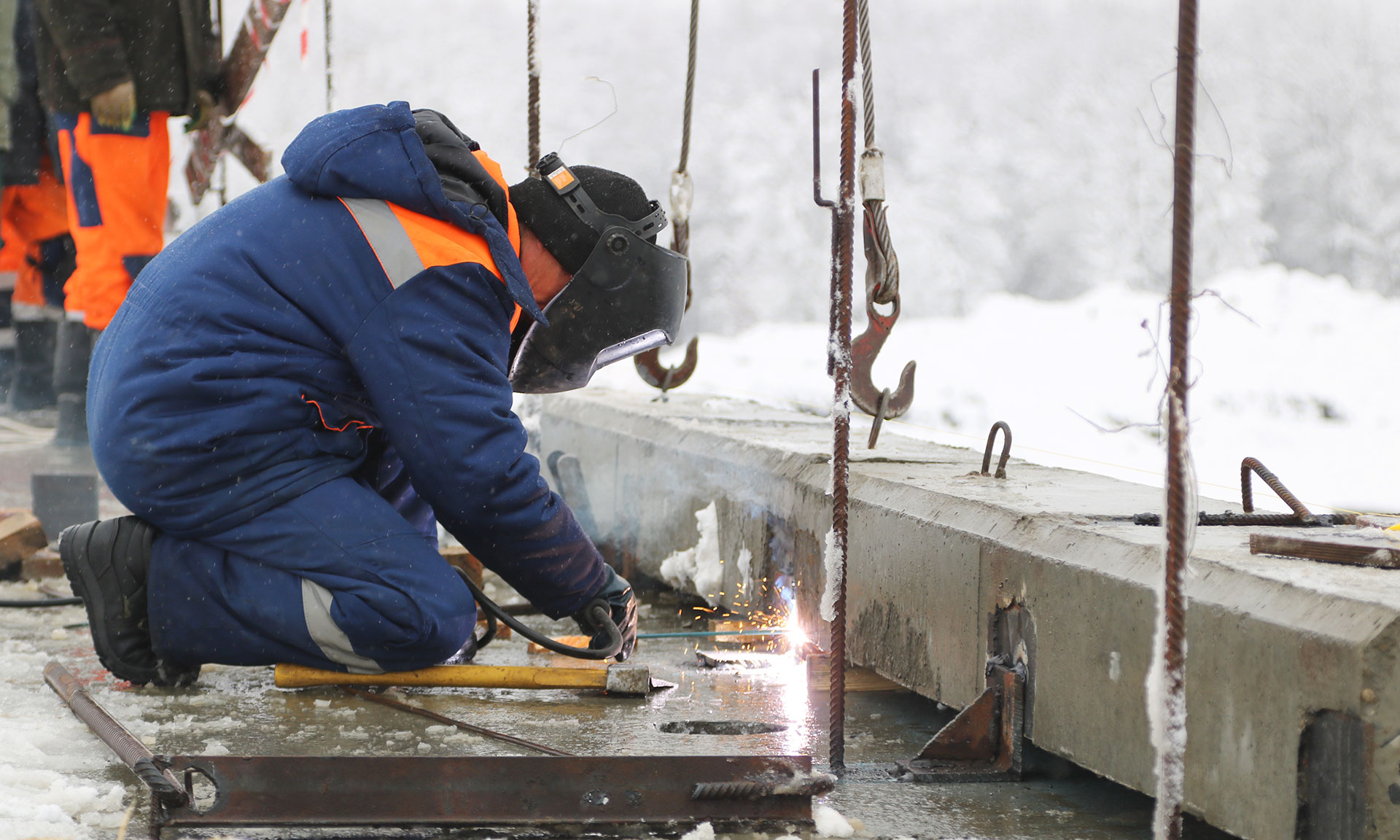 На мосту через реку Снежеть дорожники укладывают выравнивающий слой бетона. Для этого здесь сооружены теплицы, в которых газовыми пушками поддерживается постоянная положительная температура, соблюдаются другие технические условия