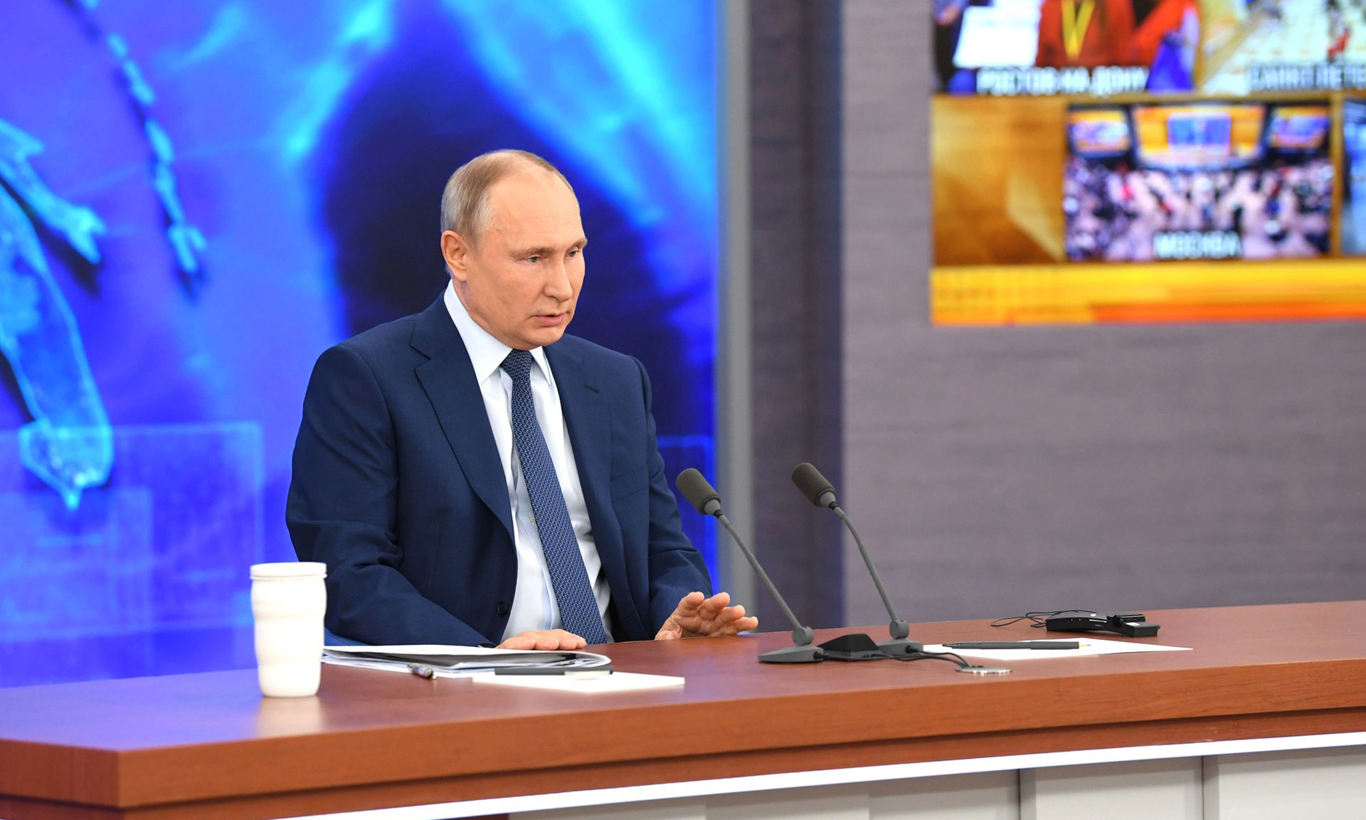 Глава государства отвечал на вопросы журналистов и жителей страны в онлайн-режиме. Прямую трансляцию пресс-конференции вели телеканалы «Россия 1», «Россия 24», Первый канал, НТВ и «Мир», а также радиостанции «Маяк», «Вести ФМ» и «Радио России».
