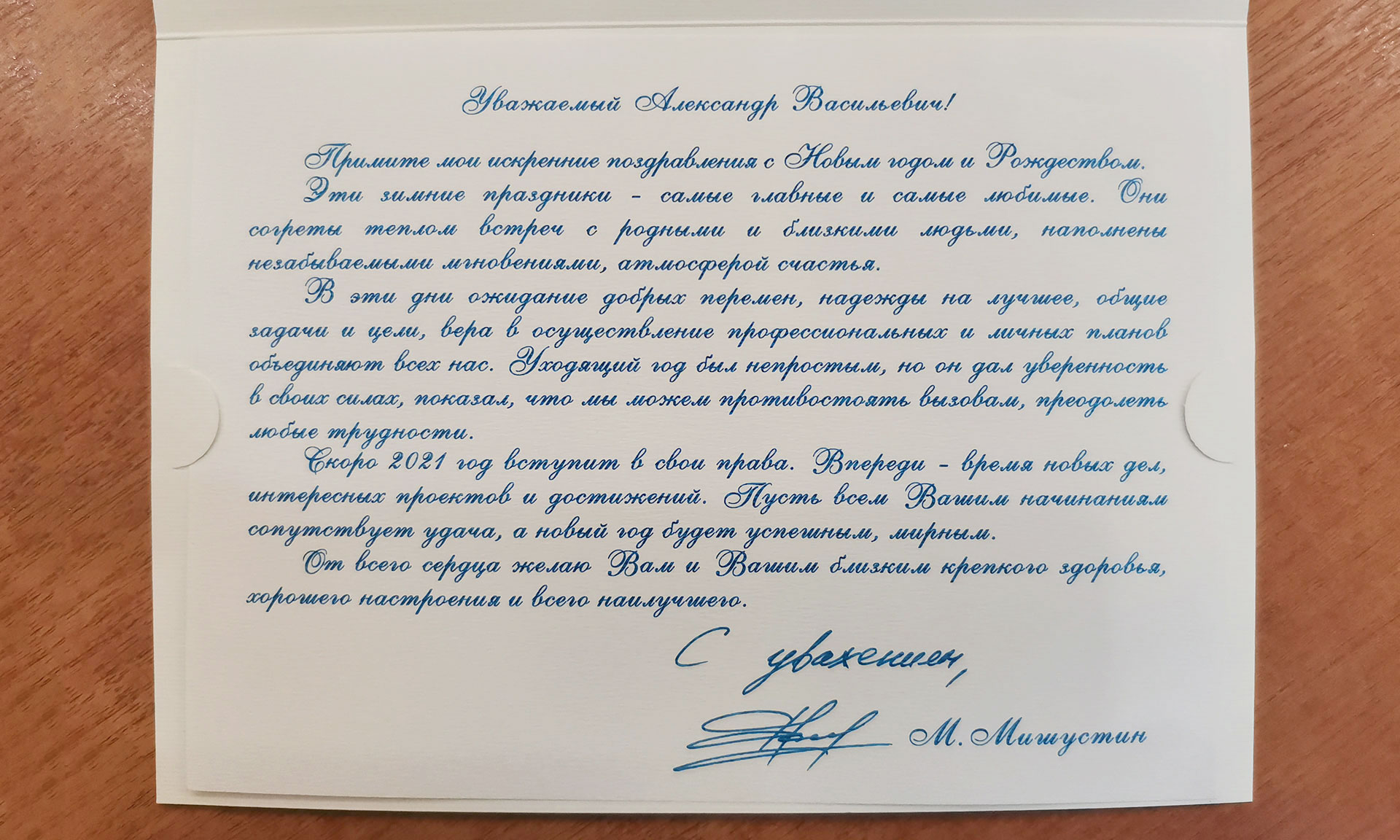 От всего сердца желаю Вам и Вашим близким крепкого здоровья, хорошего настроения и всего наилучшего».