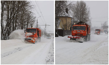 Самосвалы с погрузчиками заняты на вывозе снега с территории заездных карманов, эту работу начали с центральных улиц — Ульянова, 3-го Интернационала. 2 грейдера расширяют проезжую часть на дорогах 1 категории, где движется общественный транспорт, еще один грейдер направлен на расчистку дорог в поселок Чайковичи. Машины КДМ трудятся на Сталелитейной, Шоссейной, Флотской, чистят Первомайский мост, работают в микрорайоне Автозаводец. На улицах Литейной, Ново-Советской, Молодой гвардии большой технике помогает компактный роторный снегоуборщик. Тракторы убирают снег на тротуарах.