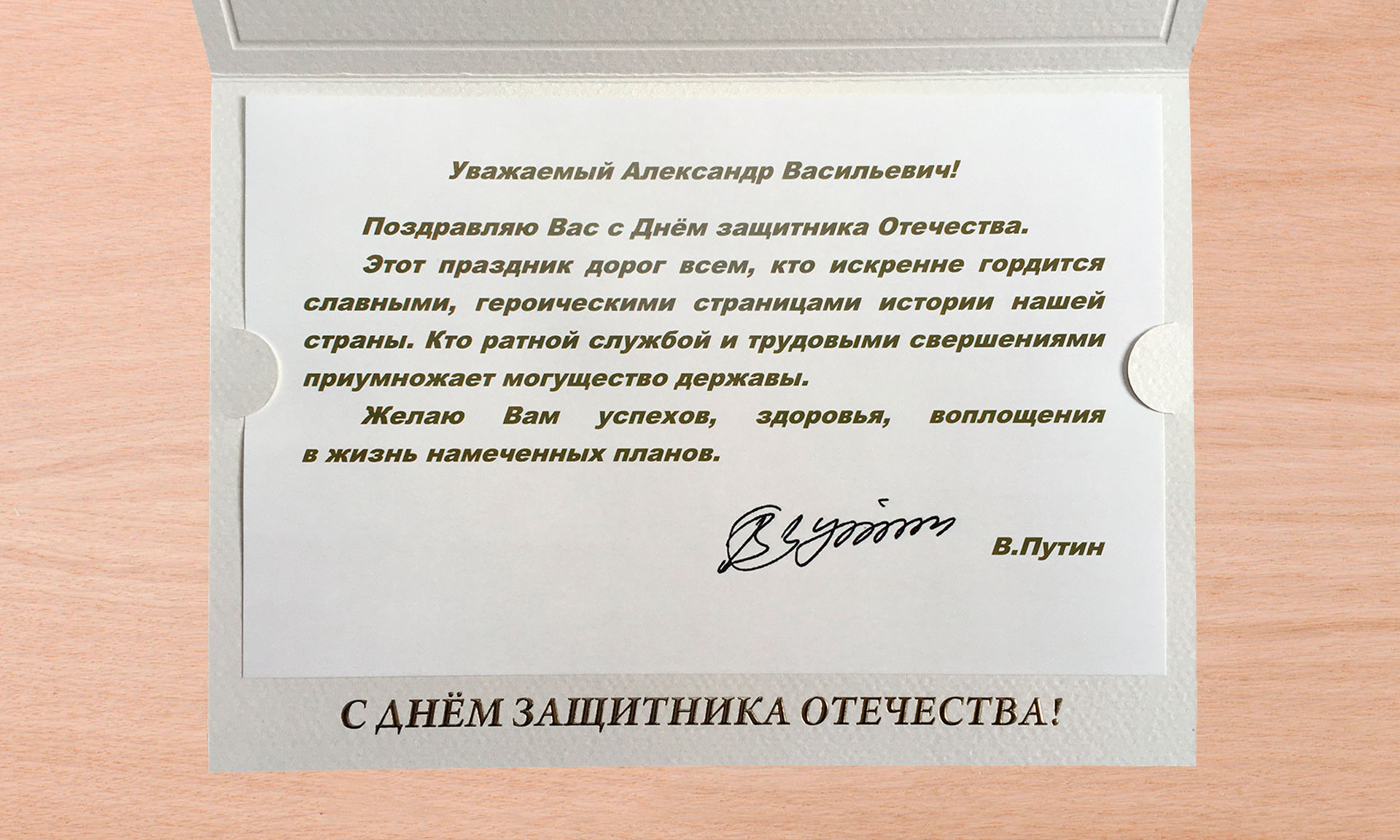 Президент Российской Федерации Владимир Путин поздравил Александра Богомаза с Днем защитника Отечества
