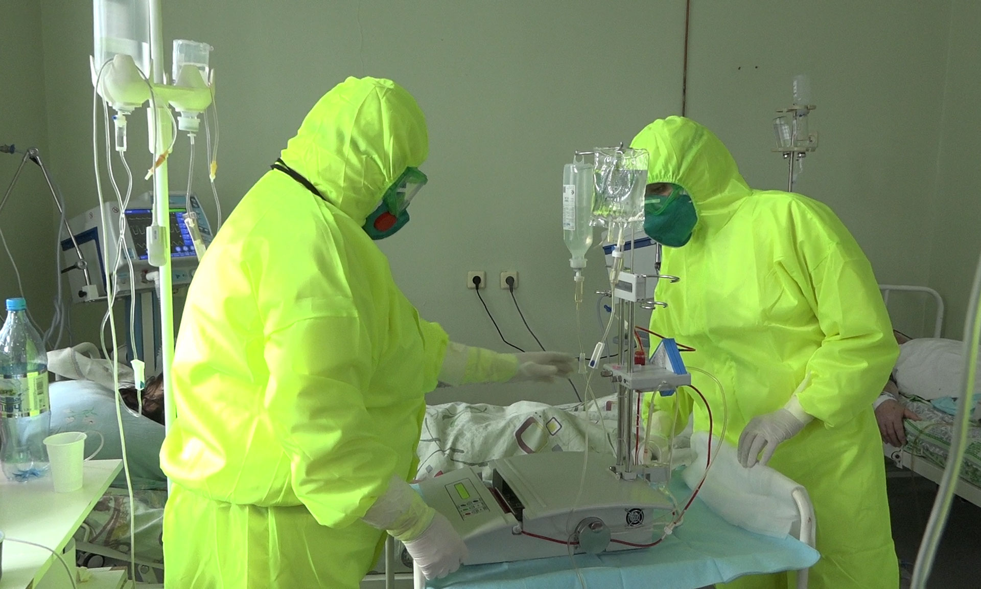 Все медицинские работники работают в средствах индивидуальной защиты. Есть костюмы, маски, респираторы, очки, перчатки, все, что нужно для защиты сотрудников от инфекции.