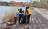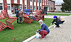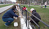 В Клинцах работники дошкольных учреждений города убирали территорию возле озера парка Воровского.