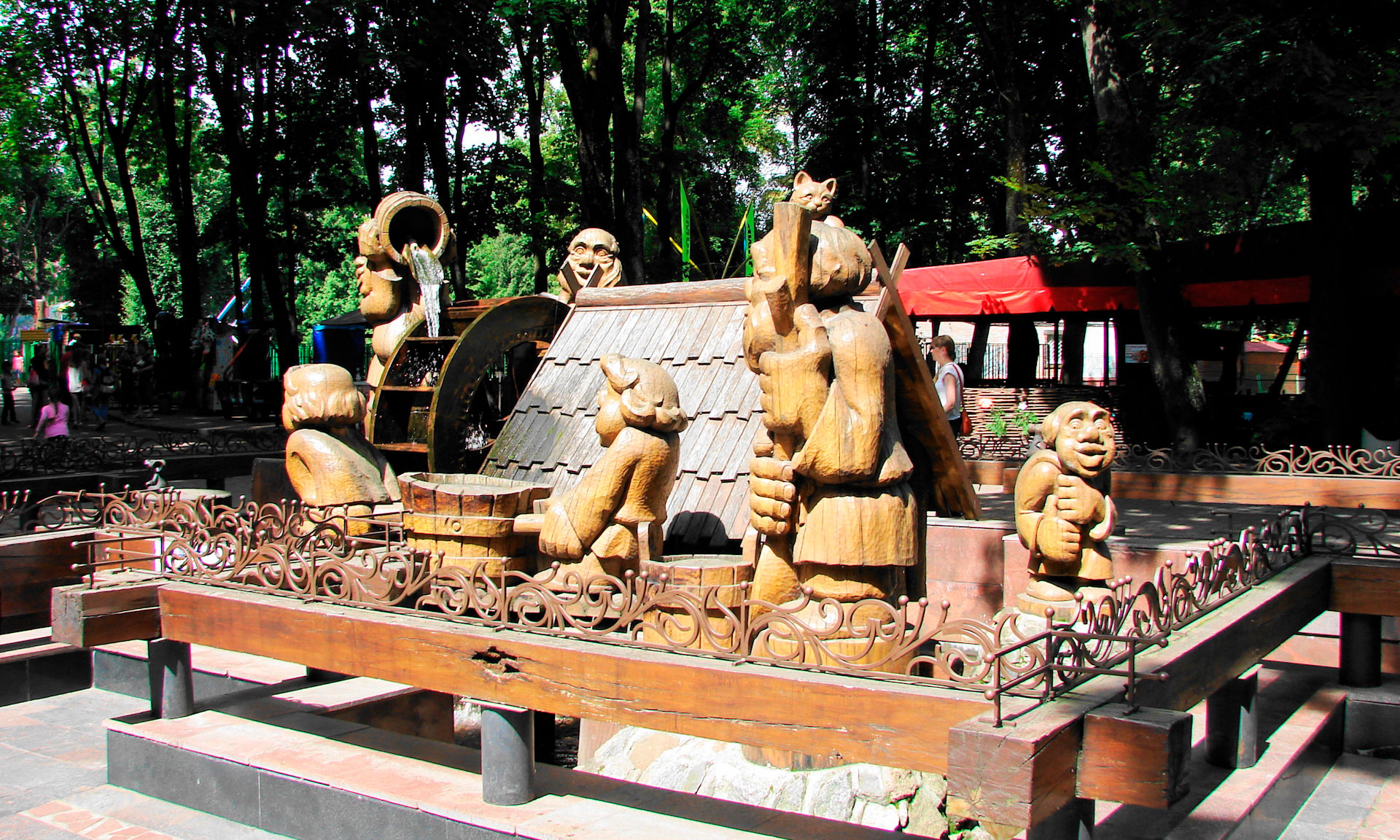 До 1950-х годов прошлого века его украшали традиционные для того времени «девушки с веслами», но в 1958 году с приходом нового директора, поэта Валентина Давыдовича Динабургского, парк преобразился и приобрел нынешний неповторимый облик.