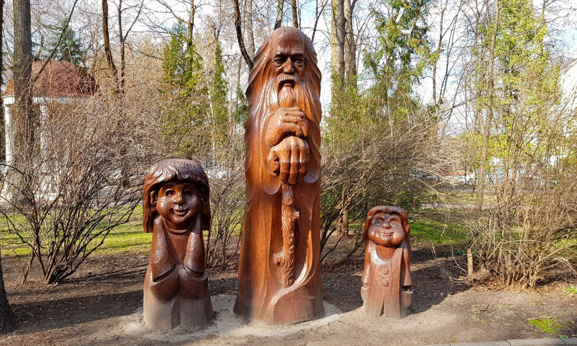 Зимой 1960 года в парке появилась первая скульптура старика-сказочника, созданная из ствола погибшего дерева. В том же году в парке был установлен первый в России бронзовый бюст, посвященный нашему земляку, писателю, поэту и драматургу А. К. Толстому. Спустя еще некоторое время жители города могли любоваться романтичной Деснянкой, смешным Емелей, лесным музыкантом и деревянным Козьмой Прутковым с его знаменитым афоризмом: «Зри в корень!».