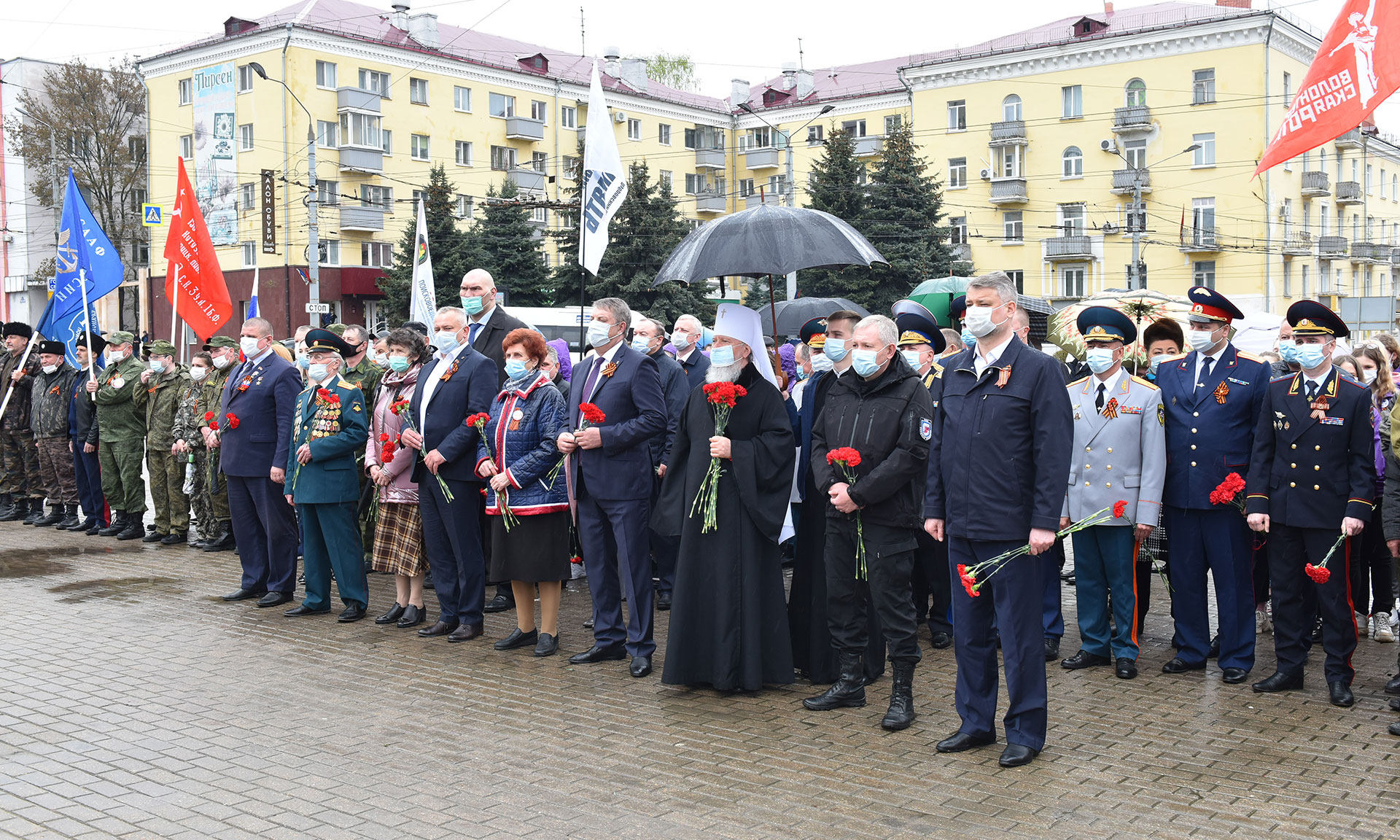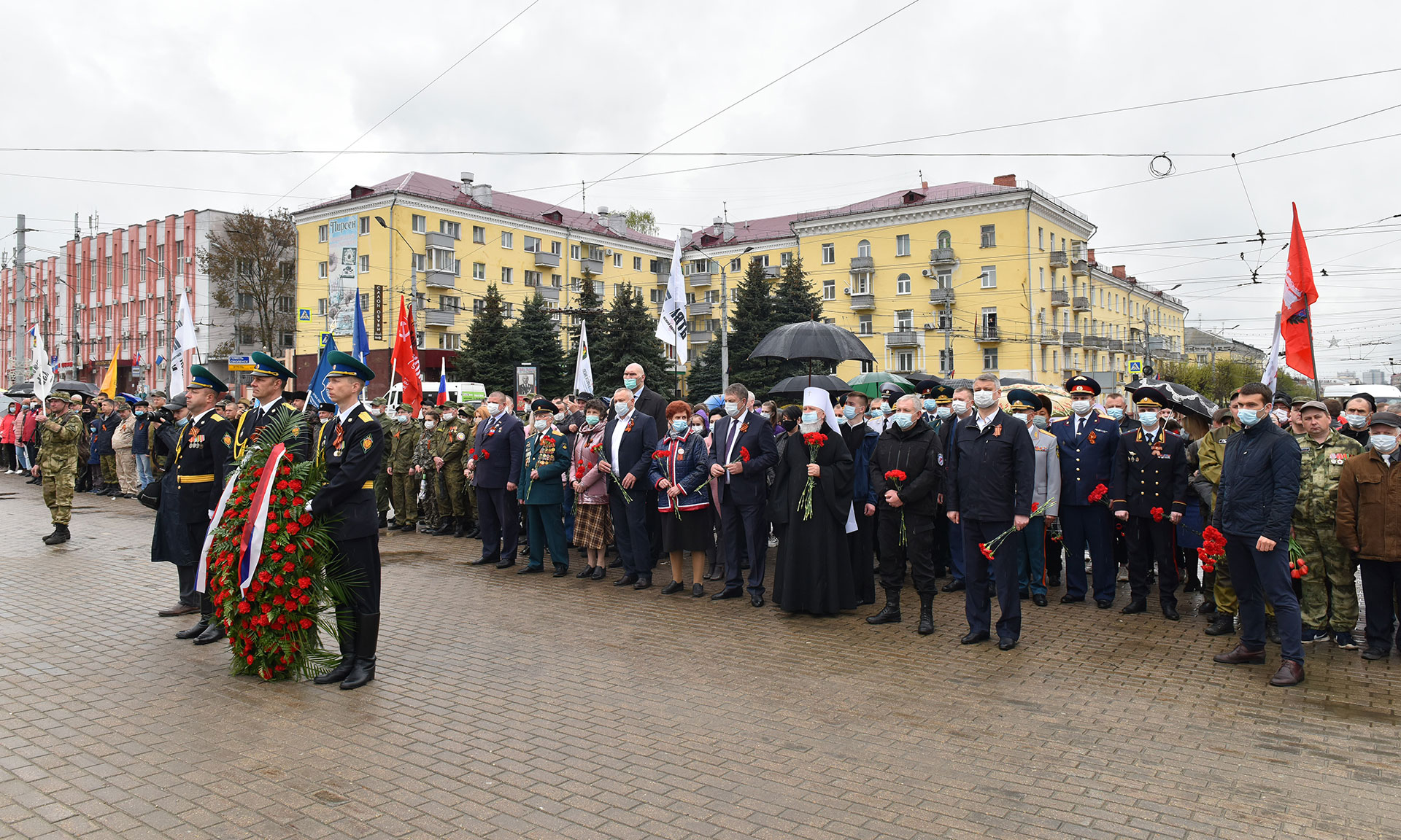 В знак памяти и благодарности воинам и партизанам, победителям в Великой Отечественной войне 1941—1945 гг., венок и цветы к Вечному огню памяти народной возложили Губернатор Брянской области Александр Богомаз, председатель Брянской областной Думы Валентин Суббот, главный федеральный инспектор по Брянской области Андрей Дьячук, Митрополит Брянский и Севский Александр, участник Великой Отечественной войны 1941—1945 гг. Николай Степанович Редикульцев, Герой Российской Федерации Александр Постоялко, член Координационного Совета, советник по международному сотрудничеству Общероссийского Общественного Движения «Поисковое движение России» Антон Торгашев, мамы Героев Российской Федерации Олега Ермакова — Лидия Филипповна Ермакова и Сергея Василева — Галина Георгиевна Василева, первый заместитель председателя Комитета Государственной Думы по экологии и охране окружающей среды Николай Валуев, депутат Государственной Думы Федерального Собрания Российской Федерации Валентина Миронова, руководители судебных органов Брянской области, прокуратуры Брянской области, правоохранительных органов и силовых структур Брянской области, заместители Губернатора Брянской области, временно исполняющие обязанности заместителя Губернатора Брянской области, заместители председателя Брянской областной Думы, руководители города Брянска.