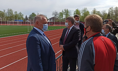— В конце прошлого года мы сдали стадион, футбольное поле. В этом году мы строим и до осени сдадим еще девять таких полей. Это даст возможность нашим детям заниматься футболом на хорошем профессиональном поле. Как сказал наш олимпийский призер Александр Погорелов, уложенные там беговые дорожки соответствуют всем стандартам, и на таком поле можно проводить чемпионаты высокого уровня, — отметил Александр Богомаз.