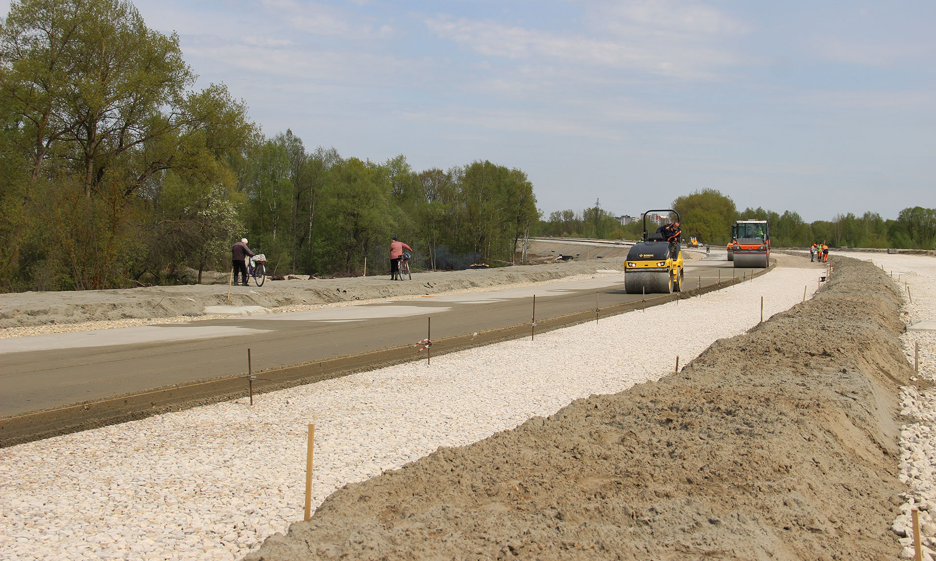 На участке от моста через Снежеть до разворотного кольца у ж/д вокзала «Брянск-I» смонтированы дождеприемные колодцы, устраивается подушка из щебня — осталось около 2 км, уложен слой тощего бетона протяженностью 1 км, установлено 600 м бордюров. Эти этапы работы самые долгосрочные, после чего подрядчик приступит к укладке асфальта.