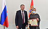 — Искренне рад нашей встрече и возможности вручить вам заслуженные награды. Президент России Владимир Владимирович Путин сказал: «С самых первых дней вы были без преувеличения на передовой, ежеминутно рисковали своим здоровьем. Многие неделями жили в разлуке с родными и близкими, в буквальном смысле слова сражались за людей в так называемых красных зонах больниц и часто действительно на пределе человеческих возможностей и сил. <…> Но, несмотря ни на что, вы проявили неиссякаемый запас любви, сострадания и отзывчивости, то, без чего нельзя работать доктором, самообладание, душевную стойкость и человечность. Уверен, вы сделали все, что могли, и даже больше, показывая настоящие чудеса профессионализма. Главное — свели до минимума потери. Это ваша заслуга».