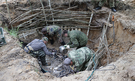 — Действительно, это место трагическое. Брянская область понесла большие потери в годы Великой Отечественной войны. В месте, где мы находимся, содержалось более 80 тысяч наших жителей, военнопленных. Более 40 тысяч из них, по имеющимся данным, было уничтожено. Одно из захоронений, как мы видим, уже вскрыли наши поисковики.