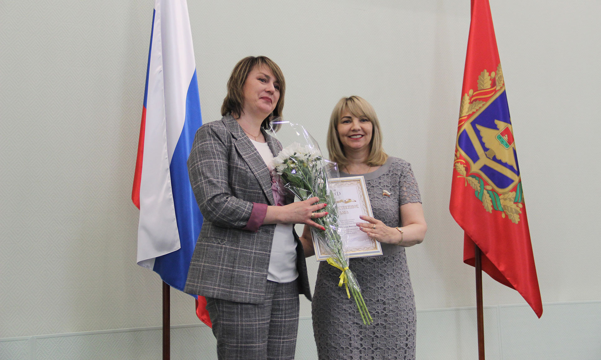 За многолетний добросовестный труд в социальной сфере и профессионализм Почетной грамотой Брянской областной Думы награждены: специалист по кадрам комплексного центра социального обслуживания населения Навлинского района Галина Коржова и заведующая хозяйством сектора материально-технического обеспечения комплексного центра социального обслуживания населения Брянска Наталья Куренкова.