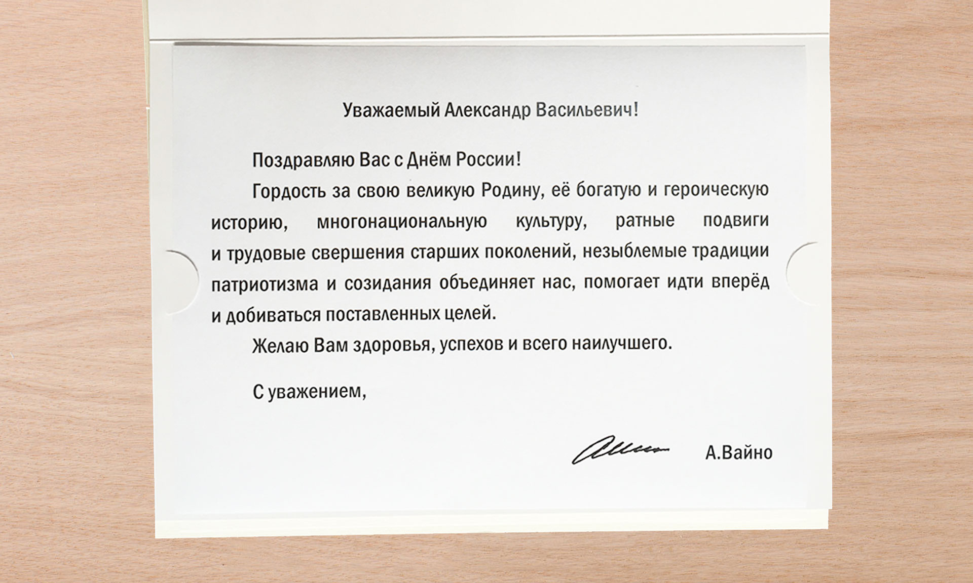 В адрес Губернатора Брянской области Александра Богомаза поступило поздравление с Днем России от руководителя Администрации Президента Российской Федерации Антона Вайно.