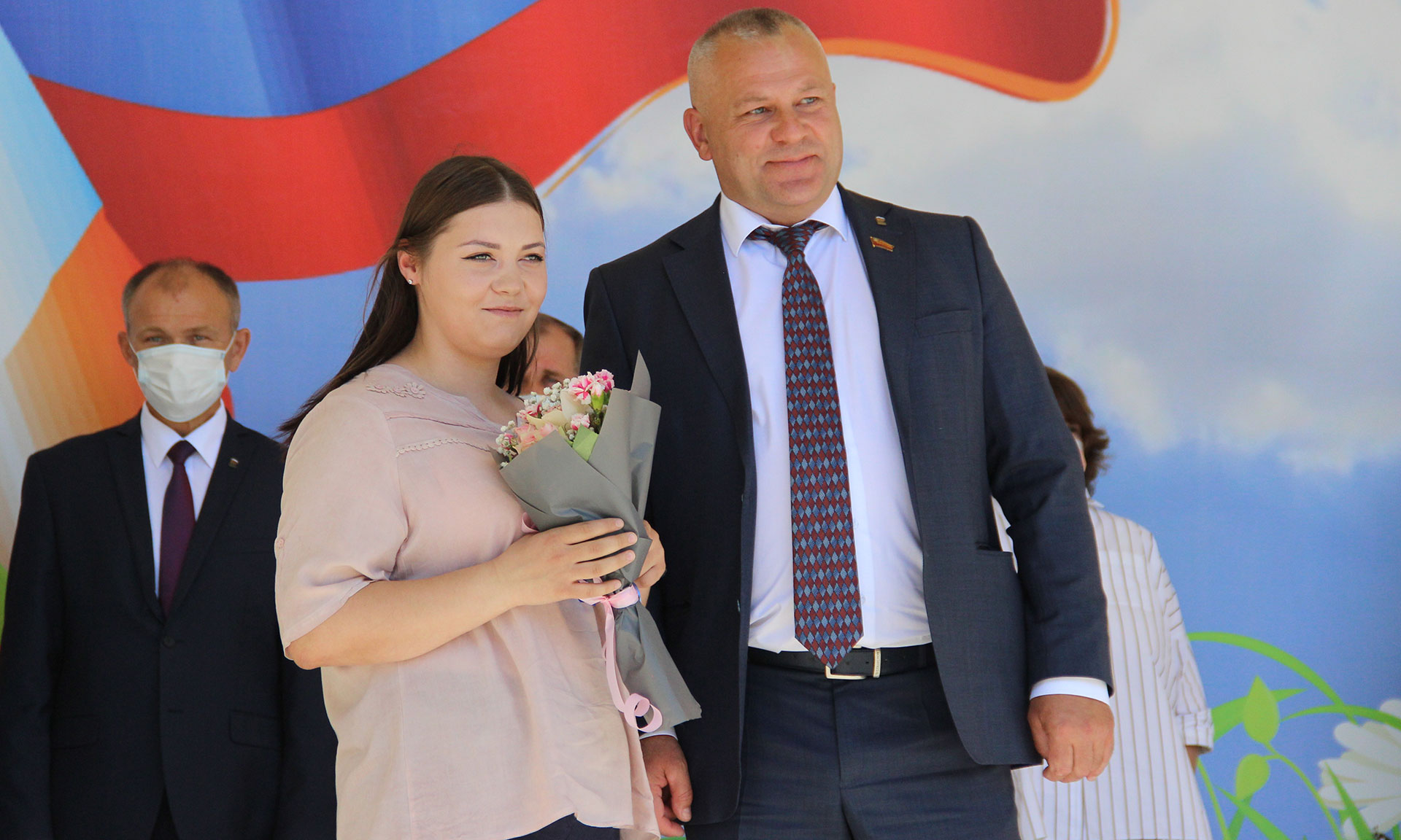 — Дорогие друзья, сегодня мы находимся в прекрасном парке, в преддверии праздника, чтобы вручить молодым девушкам и юношам ключи от их собственных квартир. Свой дом — это основа, это фундамент жизни человека, своя энергетика, своя любовь, своя душа, свой уют. И все это стало возможным благодаря человеку, который понимает, ценит и знает что такое человеческие и семейные ценности. Это наш Губернатор Александр Васильевич Богомаз. Спасибо ему огромное за это. Дорогие друзья, я желаю, чтобы в ваших домах звучал детский смех, чтобы ваш дом наполнялся теплом и благополучием.