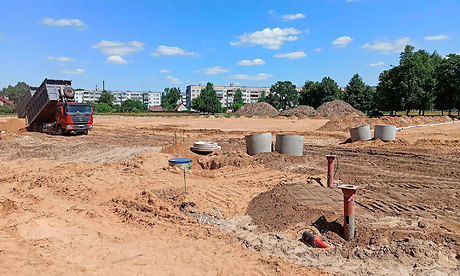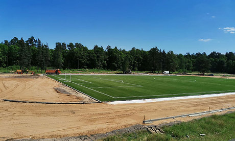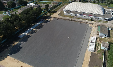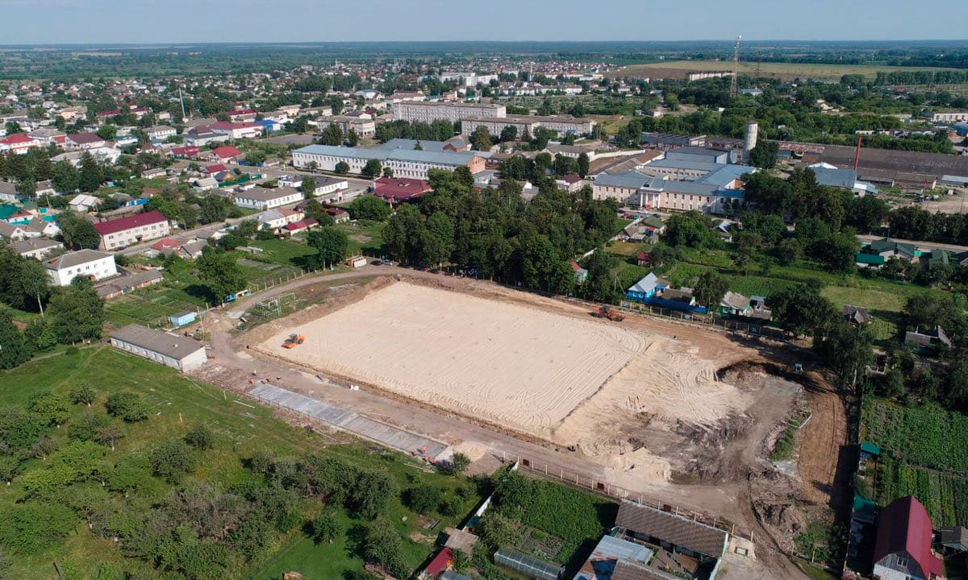 На сегодняшний день уже вывезены сотни тонн грунта, уложен дренаж, выполнены работы по водоотведению. Подготовлена песчаная подушка, в ближайшее время строители приступят к укладке искусственного покрытия футбольного поля.