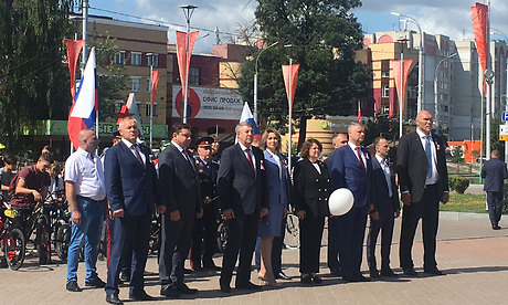 Торжества продолжились на площади Воинской Славы. Под звуки песни «Улыбнись, Россия!» юнармейцы и члены Молодой Гвардии «Единой России» вынесли и развернули на площади огромный триколор, а молодые спортсмены устроили в честь праздника велопробег по Кургану Бессмертия и парку культуры и отдыха имени 1000-летия Брянска.