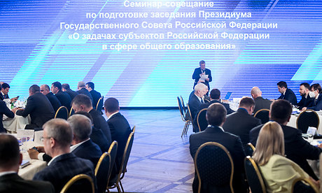 Непосредственно перед началом заседания президиума Госсовета Президент Владимир Путин проведет отдельную встречу, также по видеосвязи, в которой примут участие учителя и преподаватели вузов, студенты, абитуриенты и ученики школ.