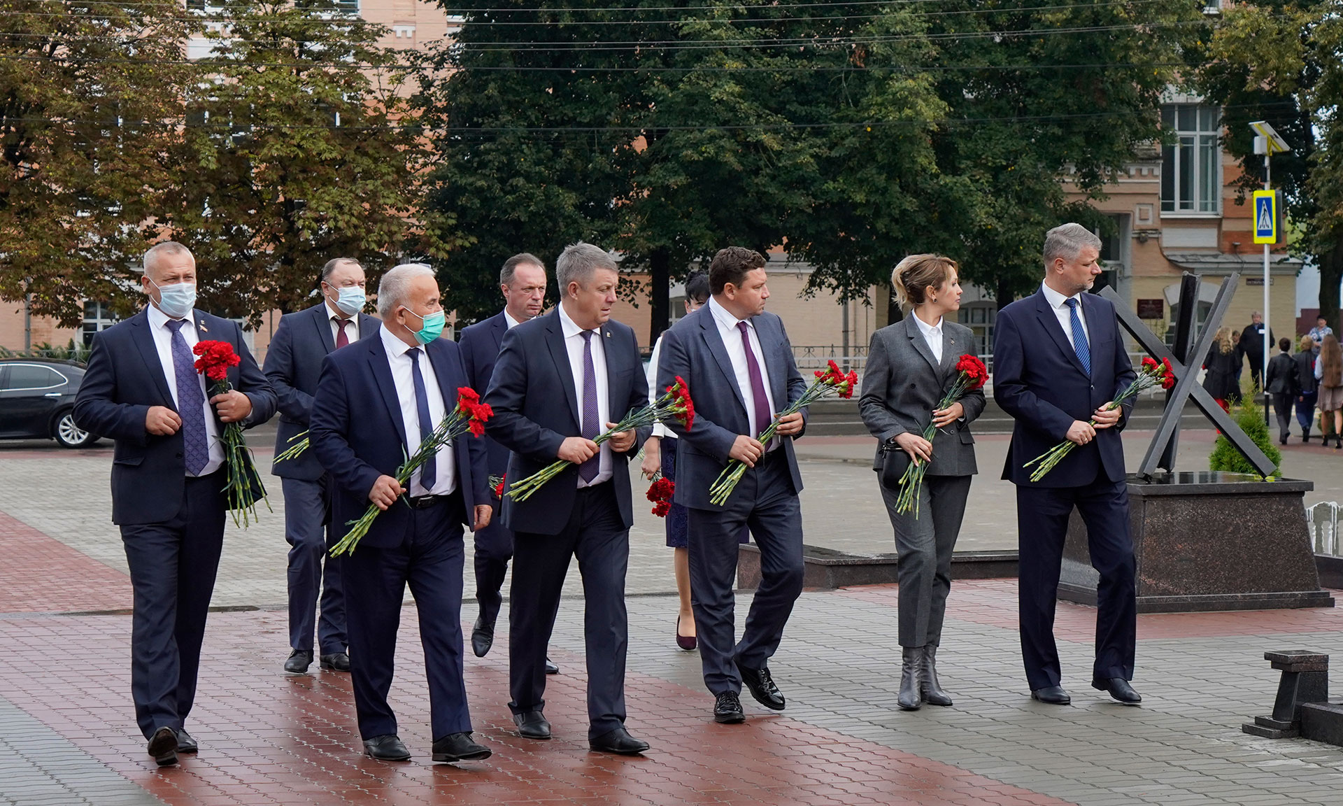 Губернатор Брянской области Александр Богомаз, председатель Брянской областной Думы Валентин Суббот, главный федеральный инспектор по Брянской области Андрей Дьячук, заместитель Губернатора Юрий Филипенко, эксперт тематической площадки ОНФ «Жилье и городская среда» Николай Алексеенко, председатель комитета по промышленности, строительству, связи, предпринимательству и собственности Брянской областной Думы Сергей Антошин, главный врач Брянской городской поликлиники № 1, председатель общественного Совета при главе города Брянска Ирина Агафонова отдали дань памяти героям Великой Отечественной войны — возложили цветы к мемориалу «Воинское кладбище 300 советских воинов, погибших в 1943 году в боях с немецко-фашистскими захватчиками».