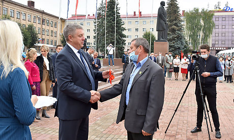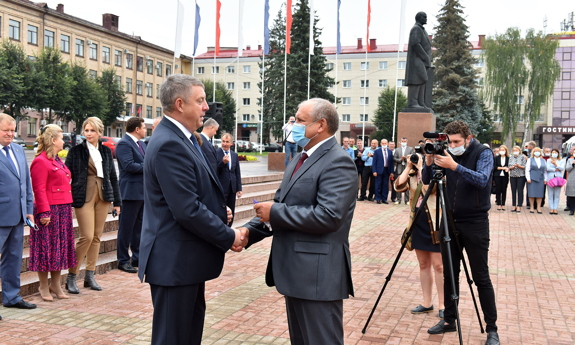 — Уважаемые участники праздничного мероприятия! Очень приятно в поздравить вас с Днем знаний и вручением новых автобусов нашим общеобразовательным школам. Это огромное подспорье для них. Довольны будут и дети, и их родители, потому что можно ребят доставить вовремя, безопасно на учебу, соревнования, конкурсы в любой райцентр, Брянск. Приятно, что сегодня мы оснастим еще и областной центр новыми автобусами. Учителей и педагогов поздравляю с Днем знаний. Спасибо вам огромное!