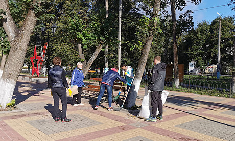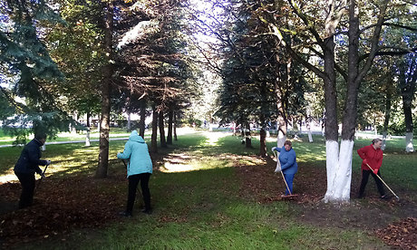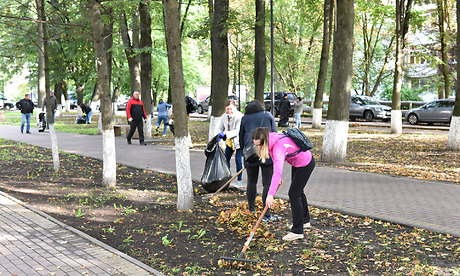Присоединился к общеобластному субботнику и Жуковский округ. Одна из главных задач — уборка осенней листвы. Также проводится побелка деревьев, удаление мусора и прочее.