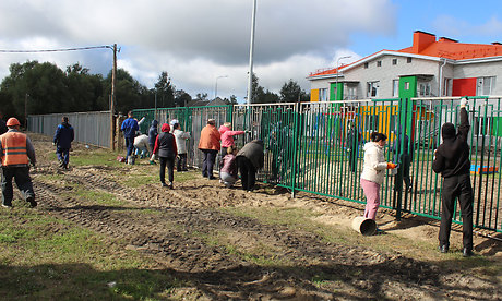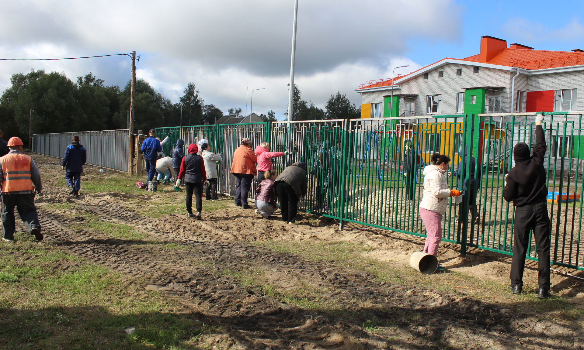 Сотрудники администрации и учреждений культуры приняли участие в покраске ограды вокруг территории нового детского сада.