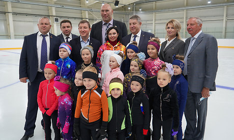 В ледовом дворце гости наблюдали за тренировочными занятиями. Ледовый дворец был построен за счет средств областного бюджета и открыт в прошлом году. Главное, как подчеркивает Александр Богомаз, чтобы детей воспитывали тренеры, влюбленные в свое дело и готовые даже переехать из столицы в сельскую местность, если там созданы все условия для работы и гарантирована достойная заработная плата.