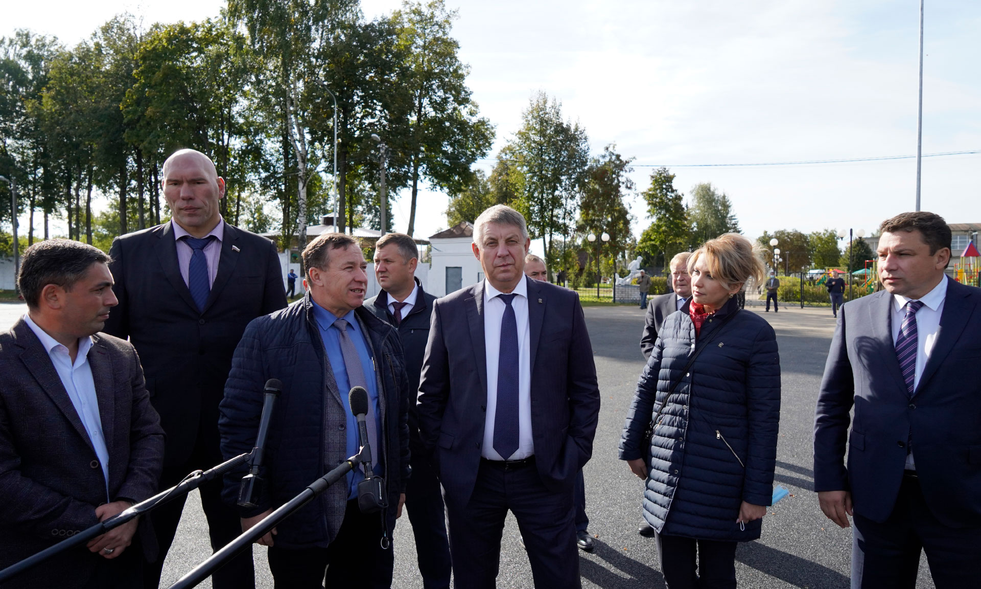 Вместе Губернатором с рабочей поездкой в район прибыли председатель Брянской областной Думы Валентин Суббот, первый заместитель председателя комитета по экологии и охране окружающей среды Государственной Думы РФ Николай Валуев, главный врач Брянской городской поликлиники № 1, председатель общественного Совета при главе города Брянска Ирина Агафонова, эксперт площадки ОНФ «Жилье и городская среда» Николай Алексеенко, врио заместителя Губернатора Брянской области Андрей Бардуков, врио заместителя Губернатора Брянской области Николай Лучкин, председатель комитета по промышленности, строительству, связи, предпринимательству и собственности Брянской областной Думы Сергей Антошин, Герой России, председатель комитета по молодежной политике, физической культуре и спорту Александр Постоялко.
