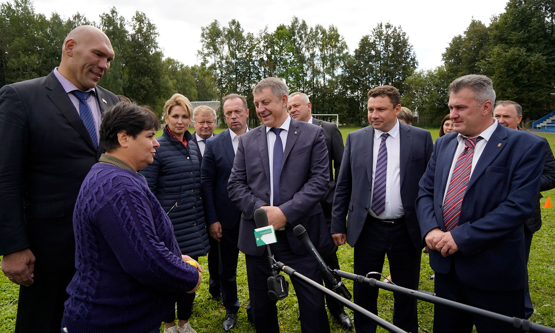 Еще один объект, который посетил Губернатор, — стадион в поселке Рогнедино. На поле как раз шла футбольная тренировка. Местных ребят тренирует Ольга Милевская — мастер спорта по футболу, член женской сборной Советского Союза. В 2019 году по программе инициативного бюджетирования здесь сделан капитальный ремонт: отремонтированы трибуны, беговая дорожка, судейская будка, установлен хоккейный корт. В 2020 году в рамках проекта «Спорт — норма жизни» приобретено и установлено спортивно-технологическое оборудование для создания малой спортплощадки для сдачи норм ГТО, оснащенной современными уличными тренажерами и спортивным оборудованием.