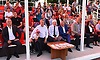 — Дорогие друзья, земляки! Мне искренне приятно присутствовать на этом празднике и поздравить вас с открытием прекрасного обновленного стадиона.