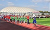 Затем на поле были приглашены команды футболистов, которым дано почётное право сыграть первый матч на обновлённом стадионе. Это команды «Заря» Стародуба и команда Брянского государственного аграрного университета (Кокино).
