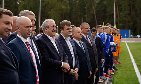 Сергей Неверов сделал первый символический удар по мячу и на новом футбольном поле начался первый футбольный матч.