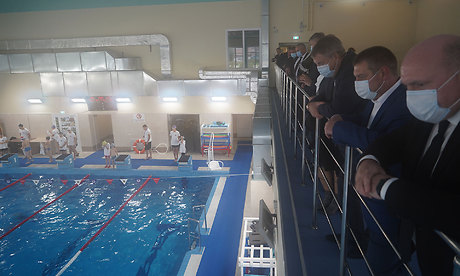 Затем для почетных гостей состоялась экскурсия по спортивному комплексу. Физкультурно-спортивный комплекс «Олимп» предназначен для физкультурно-оздоровительных занятий населения, в том числе маломобильных групп населения, плаванием и игровыми видами спорта.
