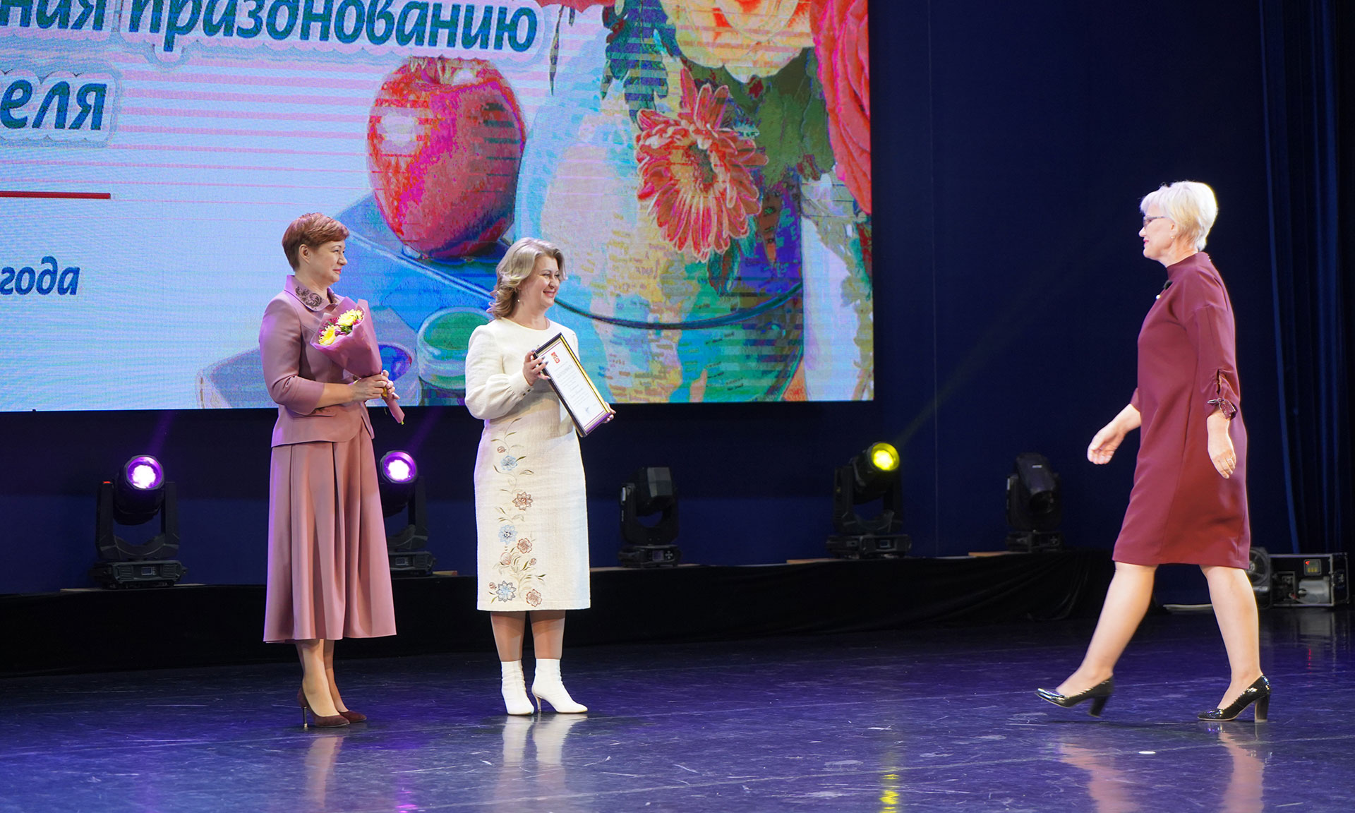 — Дорогие коллеги, уважаемые педагоги, позвольте сердечно поздравить вас с наступающим праздником. Я искренне благодарна каждому из вас за ваш самоотверженный труд, за ваше творчество, за то, как вы бережно относитесь к нашим детям!