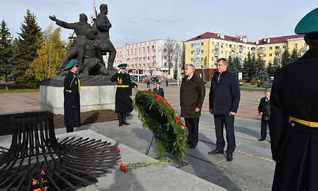 По завершении рабочей встречи Губернатор Брянской области Александр Богомаз, Чрезвычайный и Полномочный Посол Российской Федерации в Республике Беларусь Евгений Лукьянов возложили цветы к Памятнику воинам и партизанам на площади Партизан.