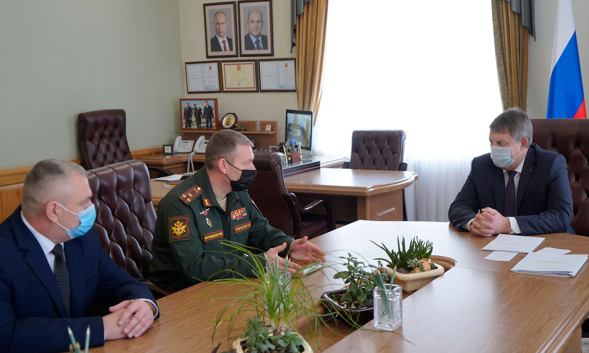27 октября состоялась рабочая встреча Губернатора Александра Богомаза полковником Тимофеем Гончаровым, недавно назначенным командиром войсковой части 42685 (Брянск-18).