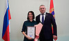 Я думаю, мои слова подтвердят и присутствующие здесь Артем Осипенко, девятикратный чемпион мира по самбо, капитан сборной нашей страны по самбо и легкоатлет Артем Калашян, бронзовый призер Паралимпийских игр. За каждой победой Артема Осипенко стоит его тренер Сергей Викторович Портнов, заслуженный тренер России. Это действительно один из лучших тренеров Брянской области и нашей страны. Сергей Викторович, Вам успехов, чтобы Вы подготовили еще не одного Артема Осипенко. Кто мотивирует Артема Калашяна не сдаваться? Конечно, его тренер Артем Михайлович Сумичев, тренер сборной команды Брянской области по легкой атлетике.